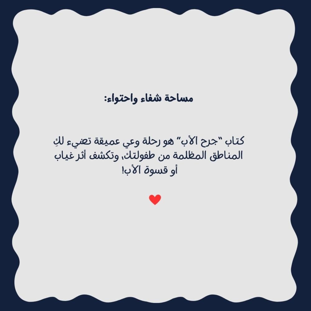 كتاب “جرح الأب” هو رحلة وعي عميقة تضيء لكِ المناطق المظلمة من طفولتك، وتكشف أثر غياب أو قسوة الأب على: